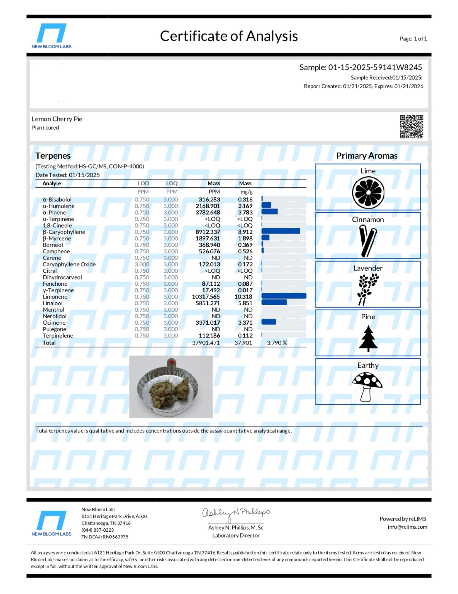 Lemon Cherry Pie delivers a mouthwatering sweet cherry pie flavor kissed with sour lemon and a soaring, tingly euphoria that leaves you sparkling with bliss and gently relaxed, perfect for social or creative vibes.