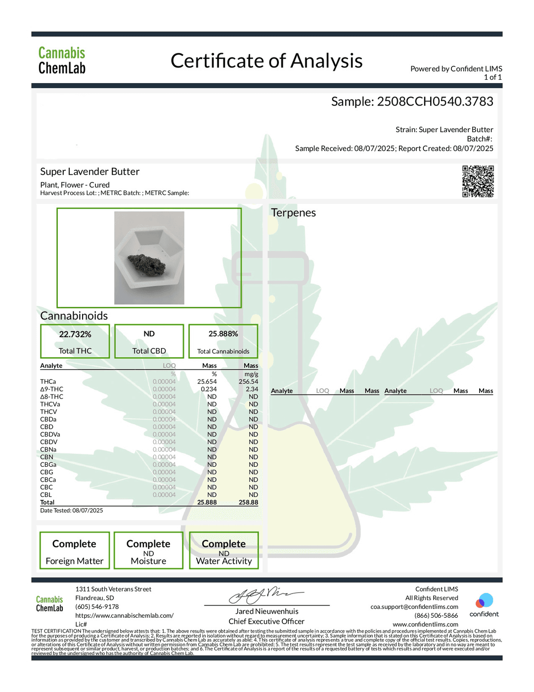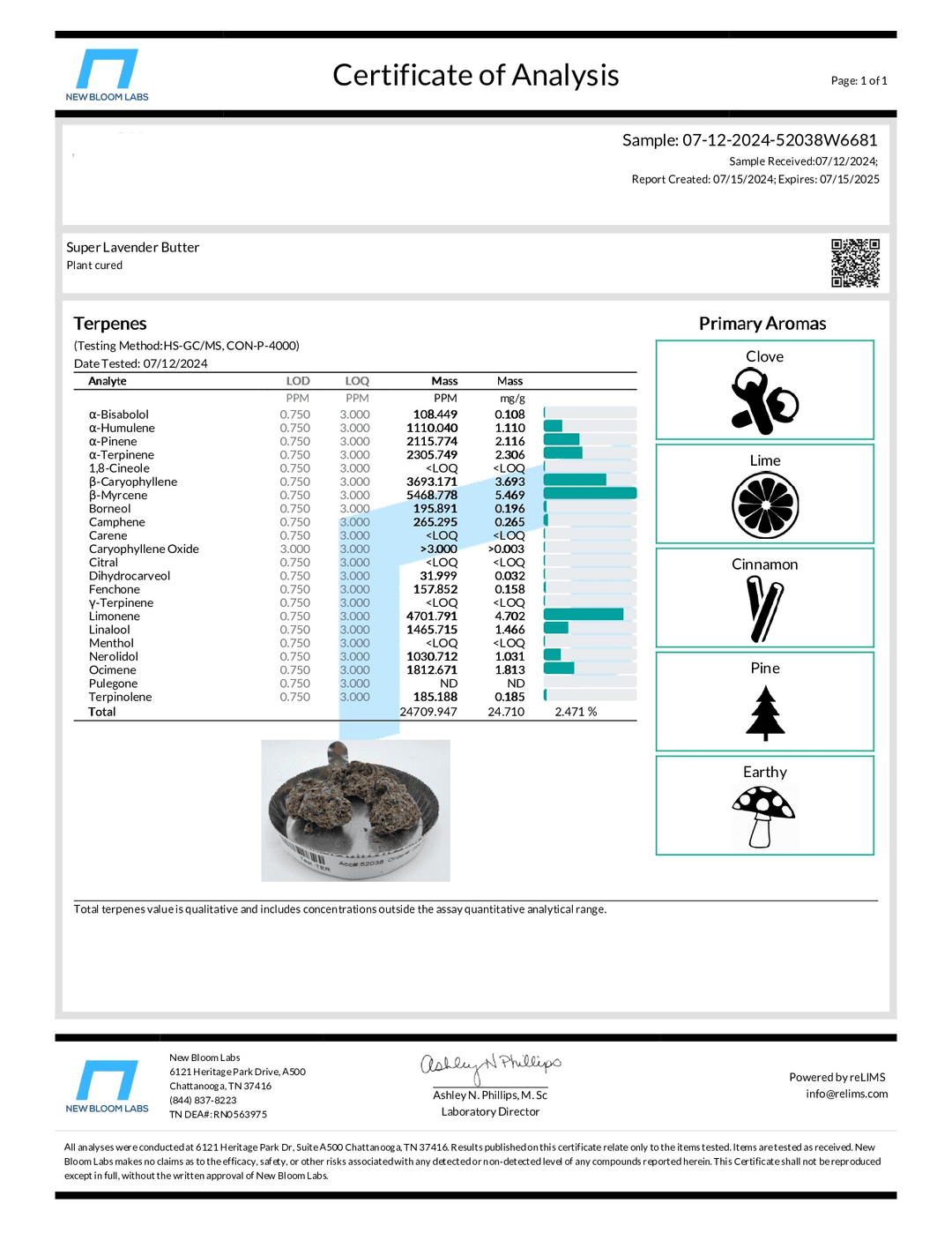 - Undisclosed Lavender Parent: Adds floral lavender scents and calming, mood-elevating effects.